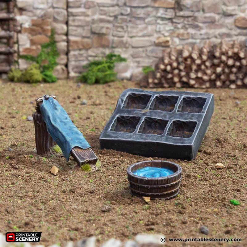 Forge adventure and industry into your tabletop world with The Smithy, a detailed terrain piece that brings the heart of a medieval workshop to life. Complete with an anvil, tools, bellows, and work surfaces, this terrain evokes the constant clang of hammer on metal and the proud craft of a village blacksmith.